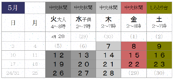 カレンダーの( )のお休みの日は、振替の対象外です。どうぞご家族皆様でGWをごゆっくりお過ごしください。